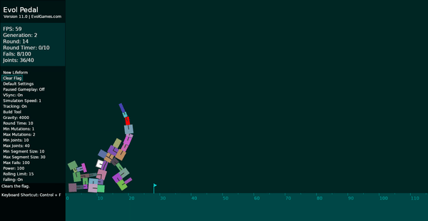 Released version 12.0 of Evolpedal , the walking evolution simulator. Major bug fixes and fine tuning make this version the best yet. Your lifeforms will effortlessly learn to walk across the screen w...